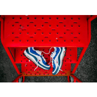 Getting the festivities started this week will be the OG Gundam colorway which features a patriotic color combination of red, white, and blue. White and royal blue dominate the upper with navy appearing on the mudguard. Red mini Swooshes then appear on the toe and side panels with red also landing inside the full length Air Max unit. A black rubber outsole completes the look.
